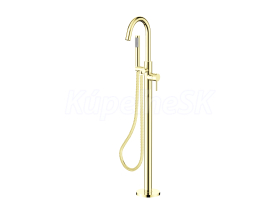 Stojanková vaňová batéria VEO I zlatá brúsená farba od európskeho dodávateľa vodovodných batérií BESCO. Batéria je určená na inštaláciu do podlahy a oceníte ju najmä ak máte voľne stojacu vaňu. Dodávané vrátane príslušenstva - montážny box, sprchová hlavica s hadicou. Stojanková vaňová batéria pre moderné kúpeľne. Dodávame v šiestich farbách a to lesklý chróm , čierna, grafitová, zlatá, zlatá brúsená alebo zlatá lesklá. Jednoduchá montáž do podlahy vďaka inštalačnému boxu, ktorý je súčasťou balenia batérie.