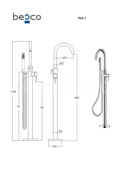 Vaňová stojanková batéria je dodávaná vrátane príslušenstva (montážny box, sprchová ružica a hadica) . Jednoduchá montáž do podlahy vďaka inštalačnému boxu, ktorý je súčasťou balenia batérie.