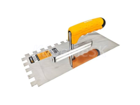 hladiace uterko nerez hladké/zubové 4, 6, 8, 10, 12, 16, mm ENPRO vyrobené z tvrdenej nerezovej ocele, hrúbka plechu 0,8 mm slúži na nanášanie lepidiel pod obklady a dlažby, stierok, štukov, omietok, tmelov a ďalších stavebných hmôt ergonomicky tvarovaná gumená rúčka