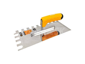 maznáčik z nerezovej ocele hladký/ryhovaný 4, 6, 8, 10, 12, 16 mm ENPRO vyrobený z tvrdenej nerezovej ocele, hrúbka plechu 0,8 mm slúži na nanášanie lepidiel pod obklady a dlažby, stierky, štuky, omietky, tmel a ďalšie stavebné hmoty ergonomicky tvarovaná gumová rúčka