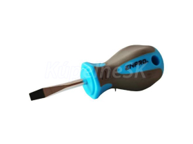 plochý skrutkovač krátky ENPRO kovový dút vyrobený z veľmi kvalitnej chromvanádiovej ocele kalený hrot je magnetický a povrchovo chránený tvrdochromom ergonomicky tvarovaná rukoväť (kombinácia polypropylénu a pryže) zaručuje výborné antisklzové vlastnosti