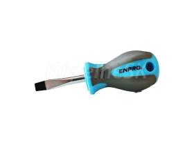 plochý krátky skrutkovač ENPRO kovový stopka vyrobená z veľmi kvalitnej chrom-vanádiovej ocele kalený hrot je magnetický a povrchovo chránený tvrdochromom ergonomicky tvarovaná rukoväť (zložená z polypropylénu a gumičky) zaručuje vynikajúce antisklzové vlastnosti