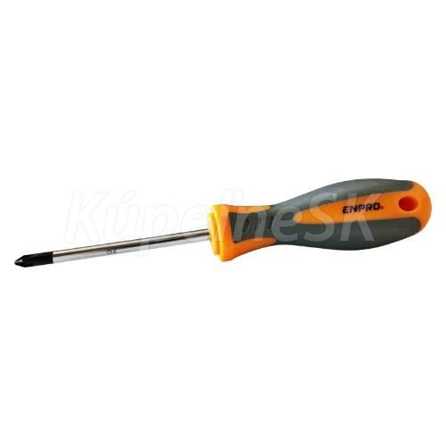 krížový skrutkovač PH ENPRO kovový trám vyrobený z veľmi kvalitnej chrómvanadiovej ocele kalený hrot je magnetický a povrchovo chránený tvrdochromom ergonomicky tvarovaná rukoväť (z kombinácie polypropylénu a gumy) zaručuje vynikajúce protisklzové vlastnosti