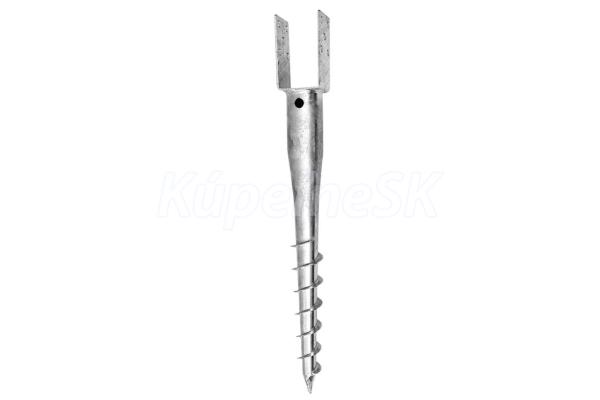 žiarovo zinkovaný zápustný vrut s U pätkou „U“ v názve zemného vrutu udáva šírku profilu U-pätky pre uchytenie dreveného trámu použitie na plotové stĺpiky, pergoly, terasy, informačné tabule, garážové státia jednoduchá manipulácia