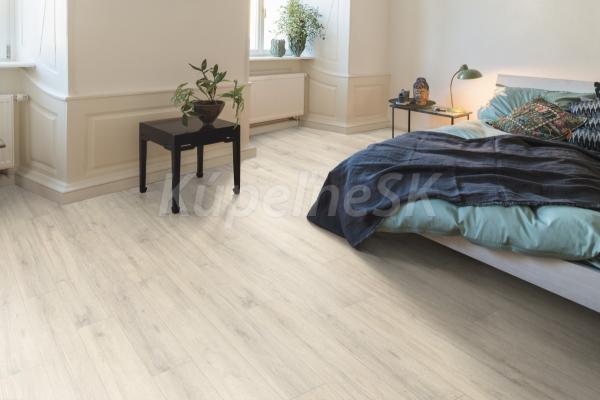 Dub kriedový zaujme na prvý pohľad kontrastnejšou dubovou kresbou na svetlejšom podklade. Dekor v bielosivej farbe pôsobí v interéri moderne a sviežo. Podlahové dosky vo formáte Classic zvýraznia celkový dojem z priestoru. 4- stranné priznané drážky po celom obvode zvýrazňujú vzhľad jednotlivých podlahových dosiek.
