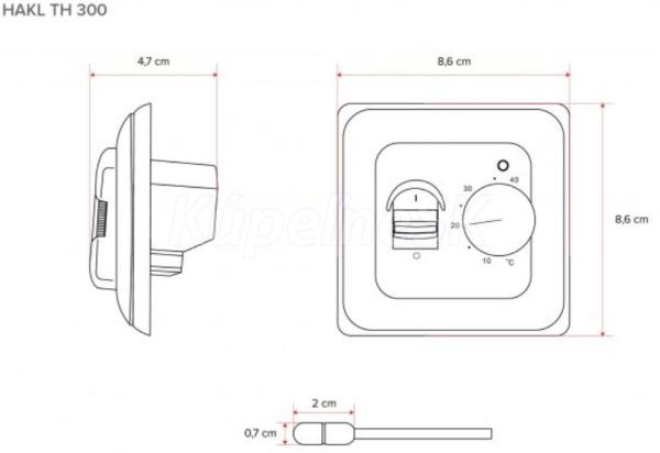 Termostat HAKL TH 300 s manuálnym nastavením a predĺženým podlahovým snímačom bol vyvinutý pre elektrické podlahové vykurovanie a systémy na temperovanie podláh. Termostat nemá možnosť regulovať teplotu v priestore (nemá zabudovaný priestorový snímač).