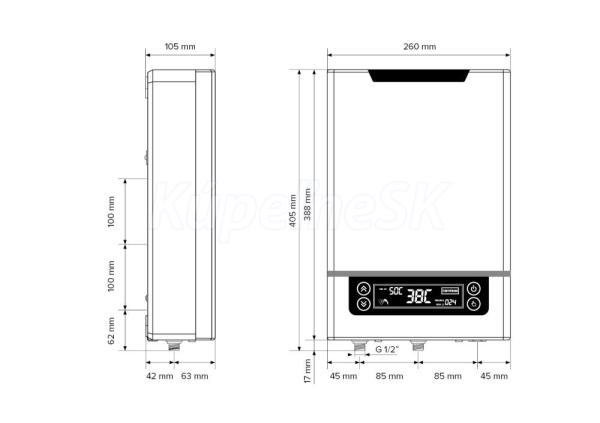 Automatické plynulé zvyšovanie, alebo znižovanie príkonu výhrevných špirál sa uplatní nielen pri používaní drezovej a sprchovej batérie, ale tiež pri zimnom a letnom režime. Táto automatická zmena výkonu ohrevu robí z ohrievača výkonný a úsporný model zároveň. Podsvietený dotykový displej s meraním celkovej spotreby elektrickej energie a litrov vody len podčiarkujú technickú vyspelosť tohto prietokového ohrievača vody.