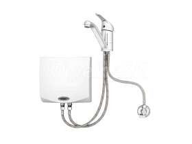 HAKL MK SET elektrický prietokový ohrievač vody a vodovodná beztlaková batéria  je súčasťou edície ICONIC LINE, ktorá ponúka zákazníkom trvalo znížené ceny pri zachovaní štandardne vysokej kvality výrobkov značky HAKL.     ZÁKLADNÉ VLASTNOSTI montáž na beztlakové a bežne dostupné vodovodné batérie tlaková prevádzka 6 bar so spínaním od 0,4 bar elektronické spínanie s riadiacou jednotkou zapojenie na 230V, pri 3,5kW priamo do zásuvky okamžitý a nepretržitý ohrev vody až o 43 °C jeden výkonnostný stupeň výhrevných špirál vyšší stupeň vodotesnosti IP 45 elektronická dvojstupňová ochrana proti prepáleniu špirál hydraulická ochrana proti prehriatiu ohrevného systému     POPIS VÝROBKU Prietokový ohrievač vody HAKL MK-1 je možné umiestniť okrem inštalácie nad/pod umývadlo a kuchynský drez aj priamo do sprchového kúta, prípadne do exteriéru na letnú terasu. Elektronická riadiaca jednotka umožňuje inštaláciu aj do vodovodného systému s domácou vodárničkou s častým zavzdušňovaním a opakovaným vypúšťaním vodovodného systému. Ohrievač je možné zapojiť aj na Vami zakúpenú batériu, pomocou vodoinštalačných spojok (fitingov). Elektronika zaznamenáva pokles napätia v elektrickej sieti a blikaním kontrolky upozorňuje užívateľa o poklese výkonu ohrevu. Riadiaca jednotka s dvomi tepelnými poistkami výrazne predlžuje životnosť výhrevnej špirály. Ostatné špecifikácie sú zhodné ako pri modelovom rade HAKL PM-TB.     SET - OHRIEVAČ S BATÉRIOU Pre jednoduchší nákup je el. prietokový ohrievač vody HAKL MK SET dodávaný spolu s vodovodnou beztlakovou stojankovou pákovou batériou HAKL, výtokové ramienko 22 cm. Súčasťou balenia je 3/8" tesnenie a úsporný perlátor, ktorý aj pri nízkych prietokoch dostatočne naperlí vodu a opticky jej tak zväčší objem.        TABUĽKA VHODNOSTI POUŽITIA Pre jednoduchší výber vhodného modelu prietokového ohrievača vody výrobca pripravil prehľadnú tabuľku vhodnosti použitia. Zoradená je podľa príkonu a typu  využitia - náročnosti na spotrebu množstva vody. Elektrické prietokové ohrievače vody aj napriek vyšším príkonom dosahujú vysokú finančnú úsporu, vzhľadom k tomu, že nemajú zabudovaný zásobník. Na rozdiel od zásobníkových ohrievačov zohrejú neobmedzené množstvo vody. Vodu zohrievajú priebežne, čo znamená, že zvyšovaním prietoku sa znižuje teplota ohriatej vody. Pri výbere prietokového ohrievača je nutné brať ohľad na spôsob využitia. Napríklad pri sprchovaní je nutné zohriať až trojnásobné množstvo vody ako pri umytí rúk, preto je potrebné zvoliť správny príkon prietokového ohrievača vody .   Poznámka:    Hodnoty v tabuľke sú orientačné, päť symbolov ••••• určuje maximálnu vhodnosť použitia, symbol x určuje nevhodnosť výrobku. Jednoduchý výber modelov ohrievačov vody podľa príkonu je možné zvoliť v hlavnej kategórii pomocou filtračného nástroja.