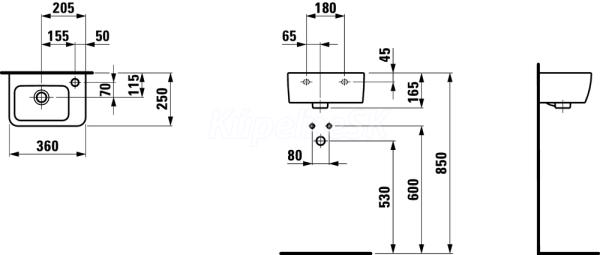 Umývadlo vpravo Veľkosť 360 x 250 x 165 mm s 1 otvorom pre batériu vpravo Biela s LCC 8.1695.5.400.106.1 Laufen Umývátko PRO 36 LCC-bi