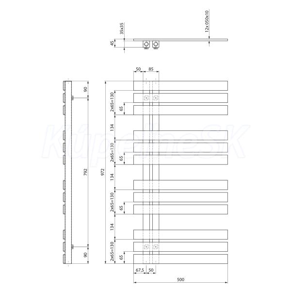 Kombinované pripojenie umožňuje ohrievať teleso ako centrálnym systémom vykurovania, tak využiť pre samostatný ohrev elektrickú vykurovaciu tyč mimo vykurovacej sezóny. Vykurovaciu tyč odporúčame s rovnakým alebo podobným výkonom podľa špecifikácie daného vykurovacieho telesa.