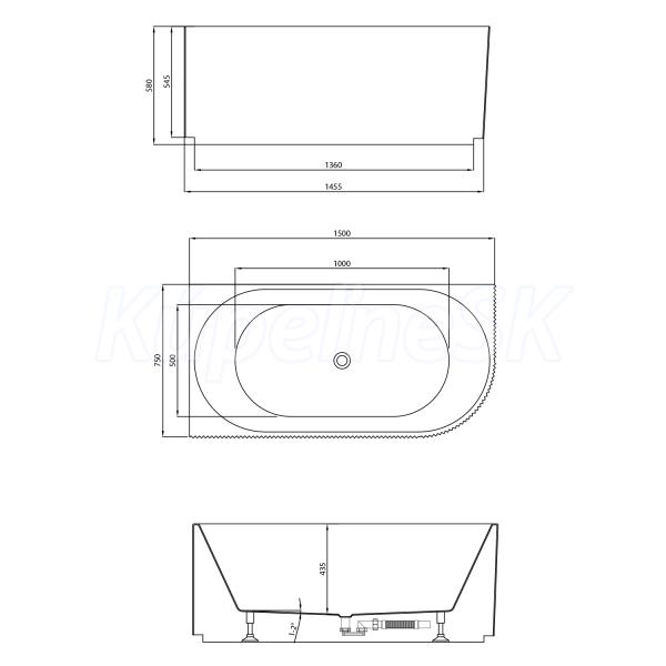Aqualine TIBERA STRIP L akrylátová rohová stojaca vaňa, 150x75 cm, biela