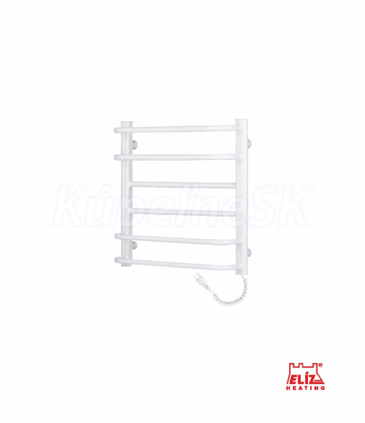 ELÍZ EBS 6/55 AF-W Vykurovanie | Infrapanely, kúpeľňové radiátory a sušiaky Elektrický sušiak, príkon 109 W, biela lesklá farba, zabudovaný ohrievací vodič, mechanické ovládanie teploty, krytie IP44, automatické vypnutie pri prehriatí. Elektrický sušiak ELÍZ, model EBS 6/55 AF-W