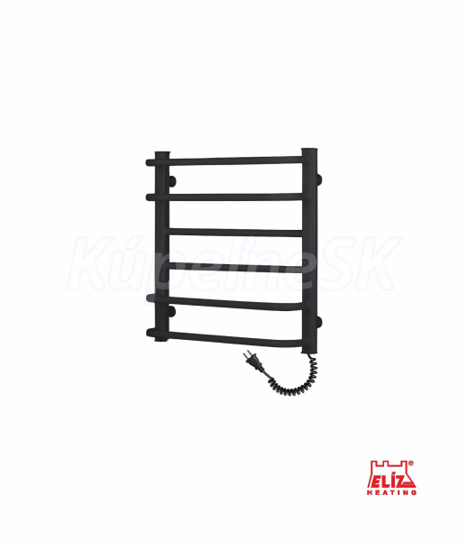 ELÍZ EBS 6/55 AF-B Vykurovanie | Infrapanely, kúpeľňové radiátory a sušiaky Elektrický sušiak, príkon 109 W, čierna matná farba, zabudovaný ohrievací vodič, mechanické ovládanie teploty, krytie IP44, automatické vypnutie pri prehriatí. Elektrický sušiak ELÍZ, model EBS 6/55 AF-B
