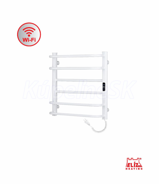 ELÍZ EBS 6/55 AF-W WIFI Vykurovanie | Infrapanely, kúpeľňové radiátory a sušiaky Elektrický sušiak, príkon 109 W, biela lesklá farba, zabudovaný ohrievací vodič, elektronické ovládanie teploty s funkciou WIFI, časovač zaponutia/vypnutia, krytie IP44, automatické vypnutie pri prehriatí. Elektrický sušiak ELÍZ, model EBS 6/55 AF-W WIFI