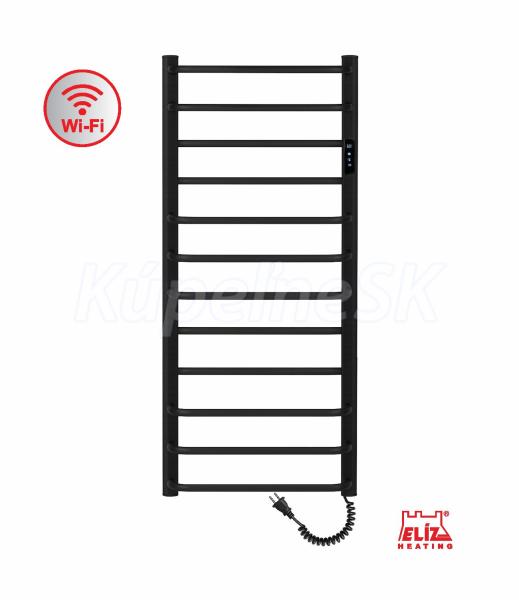 ELÍZ EBS 12/55 AF-B WIFI Vykurovanie | Infrapanely, kúpeľňové radiátory a sušiaky Elektrický sušiak, príkon 229 W, čierna matná farba, zabudovaný ohrievací vodič, elektronické ovládanie teploty s funkciou WIFI, časovač zaponutia/vypnutia, krytie IP44, automatické vypnutie pri prehriatí. Elektrický sušiak ELÍZ, model EBS 12/55 AF-B WIFI