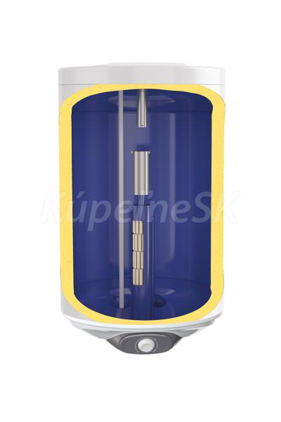 Nádrž ohrievača vody je vyrobená z kvalitnej ocele chránená vrstvou zirkónového smaltu. Kvalitná polyuretánová izolácia bez CFC hrúbky 33 mm zaručuje nízke tepelné straty a úsporu nákladov na ohrev vody. Pomocou termostatu umiestnenom na ovládacom paneli viete nastaviť teplotu vody v rozsahu 7 - 75°C, s možnosťou nastavenia režimu ECO. Pri nastevní v režime ECO sa voda ohreje na optimálnu teplotu 55°C, so zníženými tepelnými stratami a nižšou spotrebou elektrickej energie. Minimálna hodnota termostatu slúži ako ochrana proti zamrznutiu vody v ohrievači. Ohrievač má zabudované dve anódové tyče, ktoré garantujú efektívnu ochranu nádrže proti korózii a výrazne predlžujú jej životnosť. Vypínač so svetelnou kontrolkou ohrevu slúži k zapnutiu / vypnutiu ohrievača v prípade našej neprítomnosti, čo umožňuje úsporu energie.
