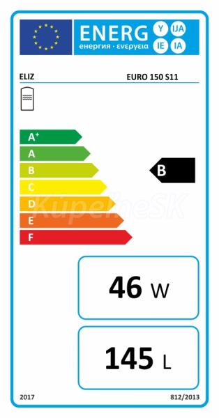 ELÍZ EURO 150 S11 Zásobníkové ohrievače | Stacionárne s 1 hadom Solárny stacionárny ohrievač vody, objem 150 litrov, 1 výmenník, elektr. ohrievacie teleso 2 kW, cirkulácia, energetická trieda B. EURO 150 S11 je stacionárny, na zemi stojaci, ohrievač vody s objemom 150 litrov. Ohrievač má zabudované elektrické ohrievacie teleso s príkonom 2 kW a je vybavený jedným vykurovacím výmenníkom na pripojenie externého teplovodného zdroja, napr. kotla ÚK alebo solárneho systému.