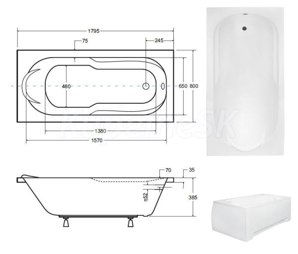 Uvedená cena je iba za holú vaňu. Možnosť dokúpenia setu čelného a bočného panelu, ktoré sú iba na objednávku (cena na dopyt)