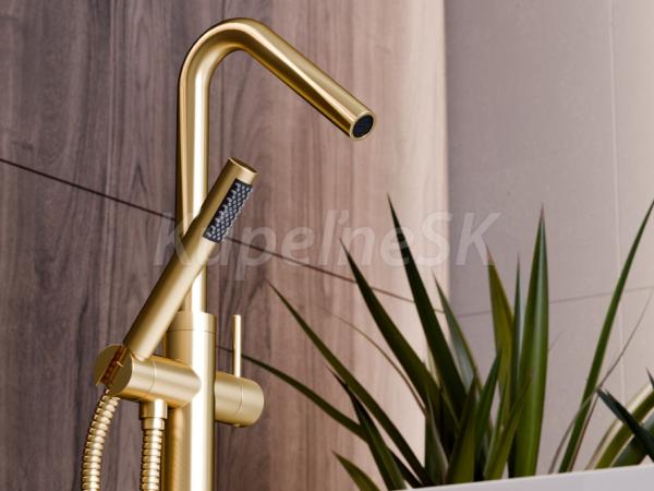 Besco Stojanková vaňová batéria do podlahy VEO III zlatá brúsená s EASY boxom