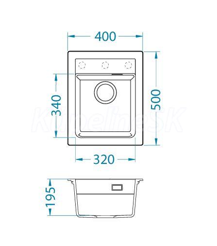 Alveus ATROX 10 bílý A10 + QC sifon_algranit Vstavaný drez, univerzál. Prevedenie: granitový drez bez odkvapu Vonkajší rozmer: 400 x 500 mm Rozmer vaničky: 320 x 340 x 195 mm Sitkový ventil 3 1/2 s prepadom, sifón pre úsporu miesta s odbočkou na umývačku Úchyty na upevnenie drezu v balení Predfrézované otvory pre batériu a dávkovač Návod na inštaláciu v obrázkoch na obale Inštalácia do skrinky pri montáži: I- o šírke 450 mm, U- o šírke 600 mm Váha: 12,5 kg Rozmer balenia (mm): 598x584x263 Vestavěný dřez, univerzál. Provedení : granitový dřez bez odkapu Vnější rozměr: 400 x 500 mm Rozměr vaničky: 320 x 340 x 195 mm Sítkový ventil 3 1/2 s přepadem, sifon pro úsporu místa s odbočkou na myčku Úchyty pro upevnění dřezu v balení Předfrézované otvory pro baterii a dávkovač Návod pro instalaci v obrázcích na obale Instalace do skříňky při montáži: I- o šířce 450 mm, U- o šířce 600 mm Váha: 12,5 kg Rozměr balení (mm): 598x584x263