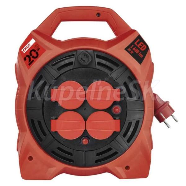 EMOS Predlžovací kábel, cievka 4Z s LED reflektorom 20m / 230V, 4 zásuvky, guma 108351