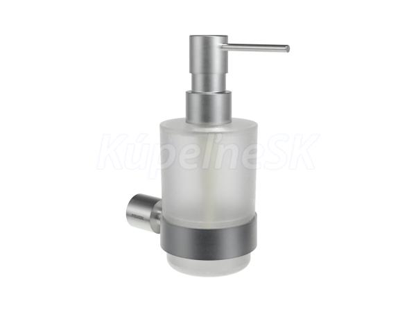 Nástenný držiak s dávkovačom mydla Fold. V prevedení kefovaná nerez a matné sklo.
