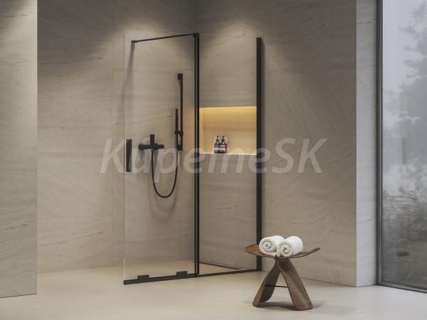 Dvojdielny sprchovací kút Walk-In Roll s otvoreným vstupom z jednej strany, s posuvnou zástenou. V čiernom prevedení a s výplňou z číreho skla s ochrannou vrstvou Ravak AntiCalc. Otočiteľný výrobok pre ľavý aj pravý variant.