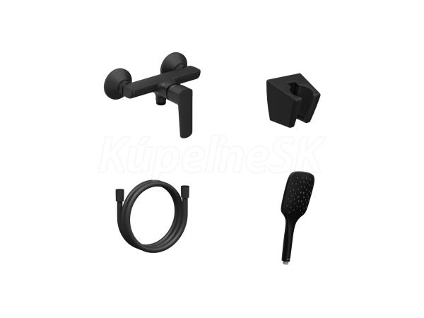 Nástenná sprchová batéria Life so sprchovým setom. V čiernom matnom vyhotovení.