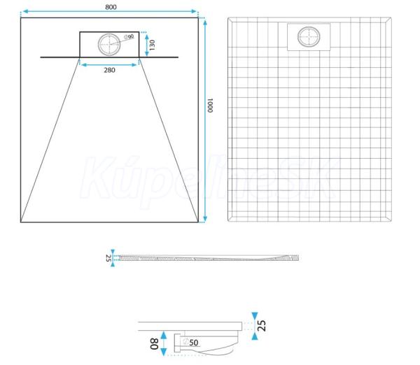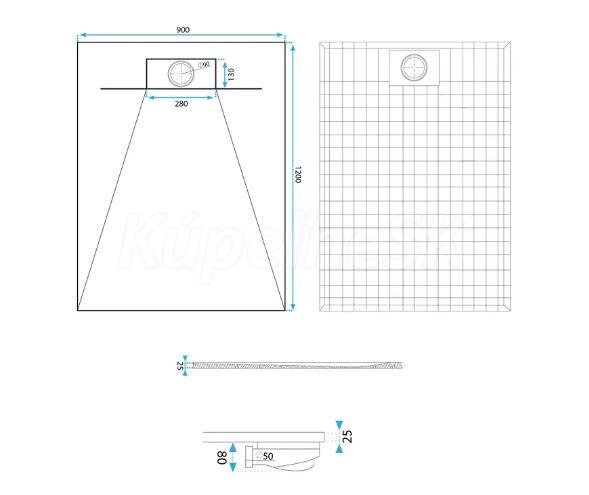 >>  Sprchové vaničky  >>  Akrylátové sprchové vaničky  >>  Rohové vaničky akrylátové  >>  Rea Bazalt Long obdĺžniková sprchová vanička 80x120x2,5 cm SMC kompozit so sifónom Biela