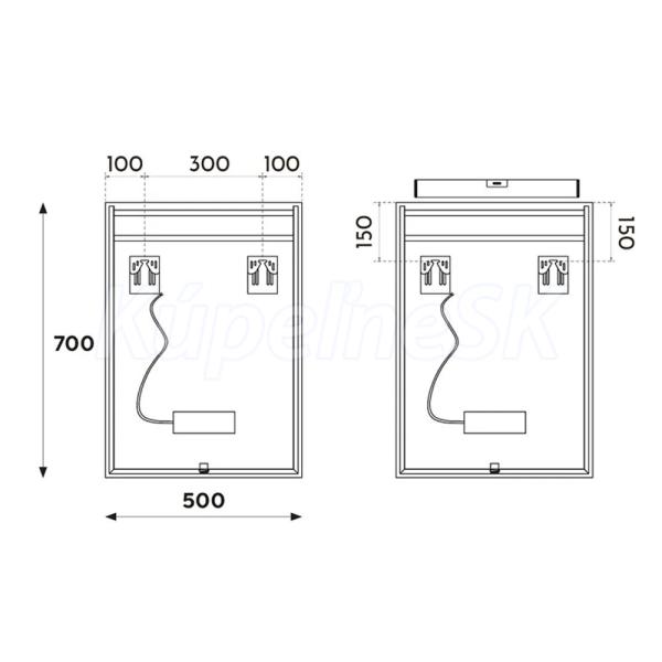 Mereo bezrámové zrkado 50x70 cm s LED osvetlením a externým vypínačom CN703N