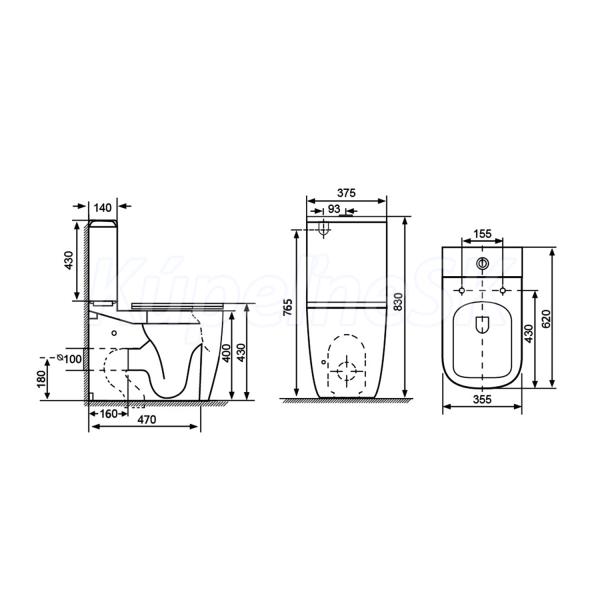 Sapho IMALA kombi WC, Vortex Rimless, spodný/zadný odpad, Biela PC107V