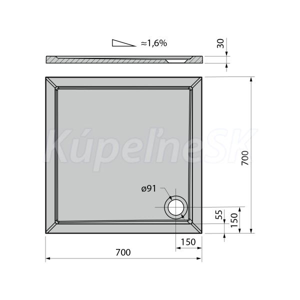 ZnačkaPOLYSAN SériaKLASIK Rozmer70x70x3 cm Dĺžka700. mm Šírka700. mm Výška30. mm FarbaBie
