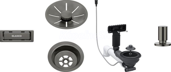 >>  KUCHYNE - Kuchynský tovar  >>  Kuchynské doplnky  >>  Blanco drezový sifón armatúra CU pre jednu vaničku s tiahlom satin dark steel