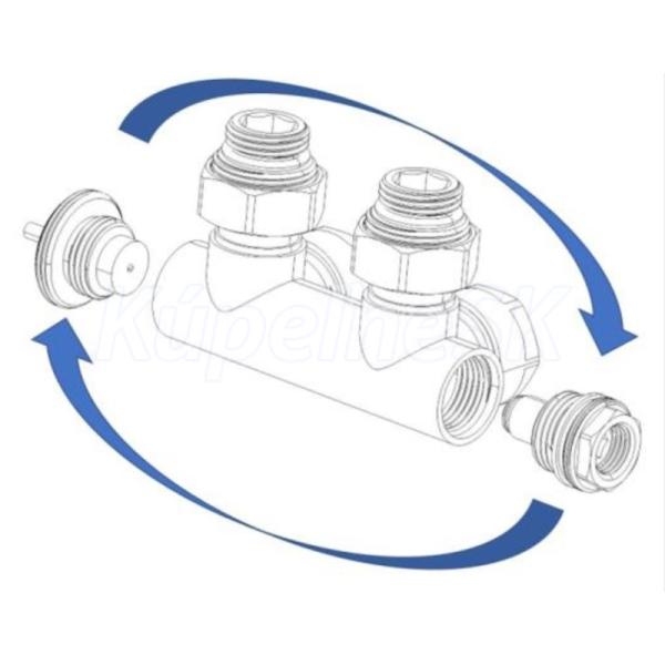 Stredová obojstranná (ľavá aj pravá) termostatická sada HYBRID vr. krycie rozety a 2 krycích trubičiek (mosadz) je určená na pripojenie radiátorov na rozvody TÚV s vývodom zo steny s rozstupom 50mm. Nie je možné použiť pre priame napojenie zo zeme. Prívod je vždy na strane termostatickej hlavice.