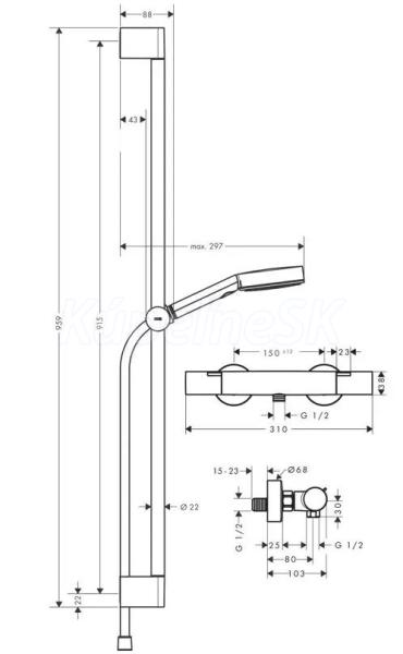 - otočný a výškovo nastaviteľný jazdec na uchytenie ručnej sprchy