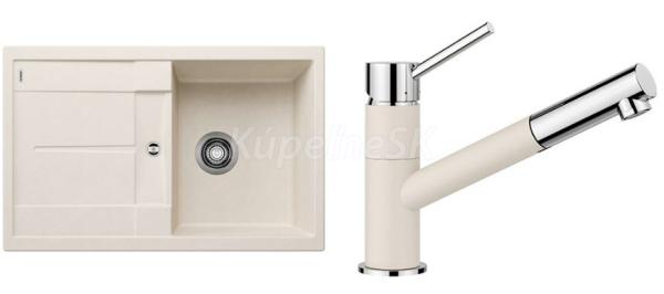 >>  KUCHYNE - Kuchynský tovar  >>  Kuchynské drezy  >>  AKCIOVÉ SETY (drez+batéria)  >>  Blanco set silgranit drez 527106 METRA 45 S biela soft a batéria 526953 KANO-S biela soft