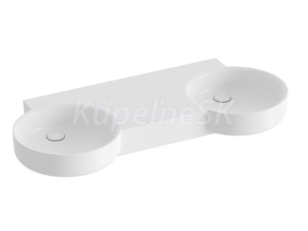 Dvojumývadlo ARC z liateho mramoru na inštaláciu na stenu alebo na zapustenie do závesnej skrinky, bez prepadu. Biele vyhotovenie. Bez otvorov - Bez otvorov - na kombináciu s umývadlovými podomietkovými batériami.