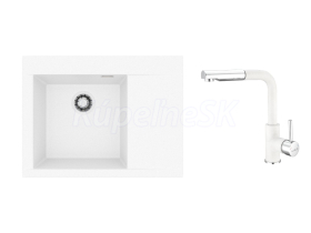 Alveus SET granit drez Pure-G 60 so sifónom A10-Biely Ľavý a batéria Siros Biela