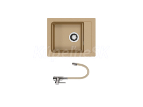 Alveus SET ALVEUS ATROX 10 BÉŽOVÝ A50 QC + BATERIE MINTAS 55/BRS Vstavaný drez, univerzál. Prevedenie: granitový drez bez odkvapu Vonkajší rozmer: 400 x 500 mm Rozmer vaničky: 320 x 340 x 195 mm Sitkový ventil 3 1/2 s prepadom, sifón pre úsporu miesta s odbočkou na umývačku Úchyty na upevnenie drezu v balení Predfrézované otvory pre batériu a dávkovač Návod na inštaláciu v obrázkoch na obale Inštalácia do skrinky pri montáži: I- o šírke 450 mm, U- o šírke 600 mm Váha: 12,5 kg Rozmer balenia (mm): 598x584x263 vysokotlaková batéria so silikónovým ramienkom otočná rozmer:210 x 340 mm prevedenie: 55/BRS Drezová batéria so silikónovým ramienkom je praktickým pomocníkom do každej kuchyne. Vďaka flexibilnému ramienku si nastavíte prúd presne do miesta, kam potrebujete. Po spustení vody, ramienko nemusíte držať, pretože flexi ramienko bude držať prúd stále v rovnakej nastavenej polohe. Drezová batéria je vyrobená z kvalitných komponentov - srdcom batérie je keramická kartuša. Batéria vybavená plastovým perlátorom, ktorý zaistí jednak prevzdušnenie prúdu a tiež sa oproti kovovým perlátorom ľahšie čistí od usadenín vodného kameňa. Dĺžka hadičiek: 40 cm, pripojenie G 3/8 Vestavěný dřez, univerzál. Provedení : granitový dřez bez odkapu Vnější rozměr: 400 x 500 mm Rozměr vaničky: 320 x 340 x 195 mm Sítkový ventil 3 1/2 s přepadem, sifon pro úsporu místa s odbočkou na myčku Úchyty pro upevnění dřezu v balení Předfrézované otvory pro baterii a dávkovač Návod pro instalaci v obrázcích na obale Instalace do skříňky při montáži: I- o šířce 450 mm, U- o šířce 600 mm Váha: 12,5 kg Rozměr balení (mm): 598x584x263 Vysokotlaká baterie otočné ohybné ramínko rozměr:210 x 340 mm (š x v) provedení: barevný nástřik 55/BRS Dřezová baterie se silikonovým ramínkem je praktickým pomocníkem do každé kuchyně. Díky flexibilnímu ramínku si nastavíte proud přesně do místa, kam potřebujete. Po spuštění vody, ramínko nemusíte držet, protože flexi ramínko bude držet proud stále ve stejné nastavené poloze. Dřezová baterie je vyrobena z kvalitních komponentů - srdcem baterie je keramická kartuše. Baterie vybavena plastovým perlátorem, který zajistí jednak provzdušnění proudu a také se oproti kovovým perlátorům snáze čistí od usazenin vodního kamene. Délka hadiček: 40 cm, připojení G 3/8