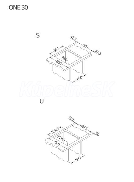 Inštalácia U: do skrinky so šírkou 800 mm Provedení : nerezový dřez, BRS