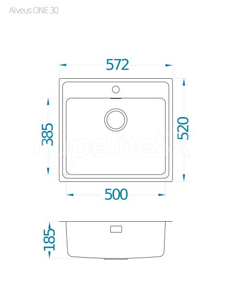 >>  KUCHYNE - Kuchynský tovar  >>  Kuchynské drezy  >>  Nerezové drezy  >>  Alveus ONE 30 F/S/U nerezový drez so sifónom 572x520x190 mm BRS