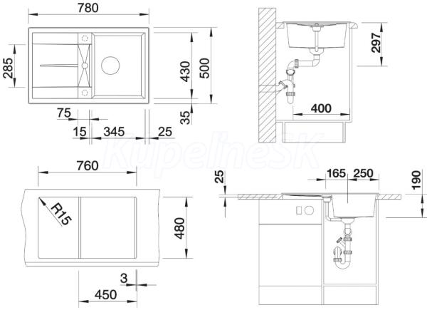 >>  KUCHYNE - Kuchynský tovar  >>  Kuchynské drezy  >>  Granitové drezy  >>  Blanco vstavaný drez METRA 45 S SILGRANIT 780x500 s excentrom sivá skala
