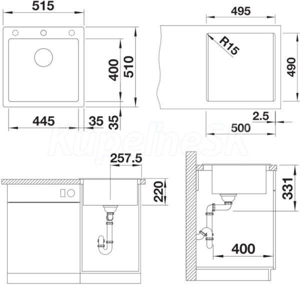 rozmer drezu 445 x 400 mm