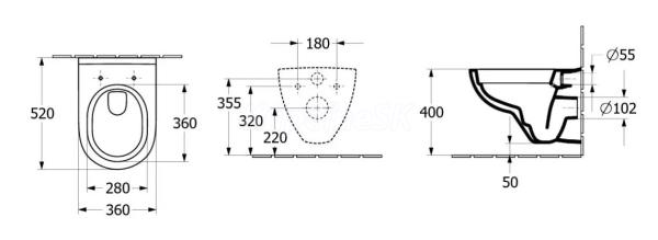 >>  WC-Bidety-dosky-Pisoár  >>  WC závesné  >>  Villeroy & Boch O.Novo WC závesné 52x36 cm TwistFlush s WC sedátkom SC Alpská Biela