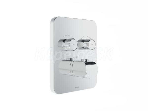 Termostatická podomietková 2-cestná vaňová/sprchová batéria Flat, určená pre R-box. Vo vyhotovení chróm. Nastavenie stálej teploty vody.