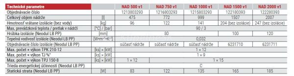Skladovacie nádrže NAD sa vyrábajú s možnosťou použitia jednej až troch prírub. Na montáž vykurovacej jednotky s prírubou TPK možno použiť prírubu s rozstupom skrutiek 210 mm. Rozstup prírub a počet prírub je možné na požiadanie zmeniť. Príruba je štandardne zaslepená. Zásobník je vhodný ako vyrovnávacia nádrž pre vykurovacie systémy s kotlami na tuhé palivo a tepelnými čerpadlami.