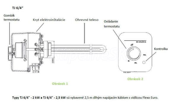 Dražice T/J 6/4“ elektrická výhrevná jednotka závitová,predĺžená chladiaca časť 2,5 kW