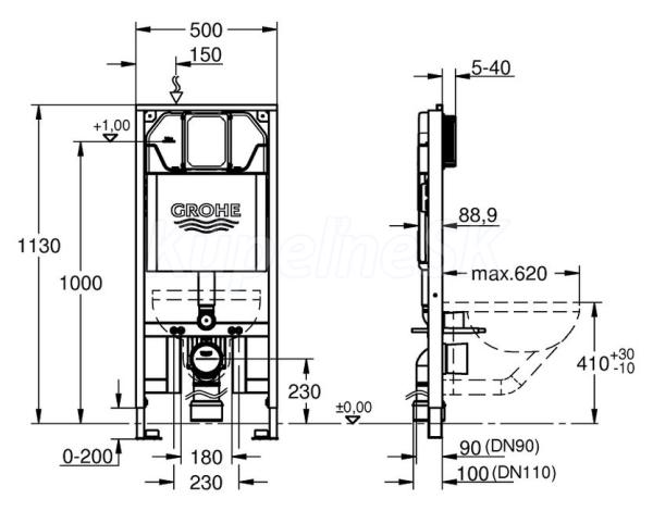 GROHE WC-modul Rapid SL Slim WC 6-9 l, stavebná výška 1,13m šírka 10cm