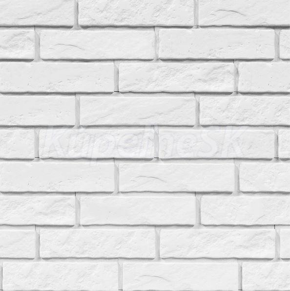 Sadrový obklad PANAMA 1 v bielom odtieni pripomína svetlú tehlu bez škárovania.