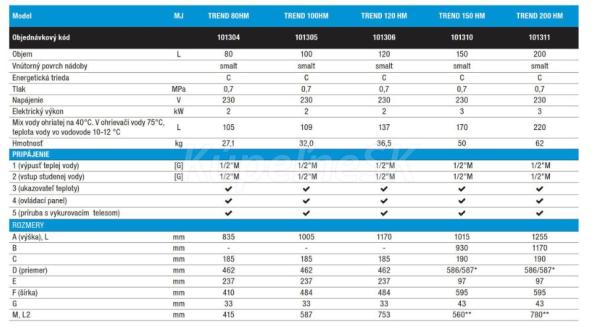 Doporučený objem expanznej nádoby: TREND 80 = 3 l, TREND 100-150 = 5 l, TREND 200 = 8 l.